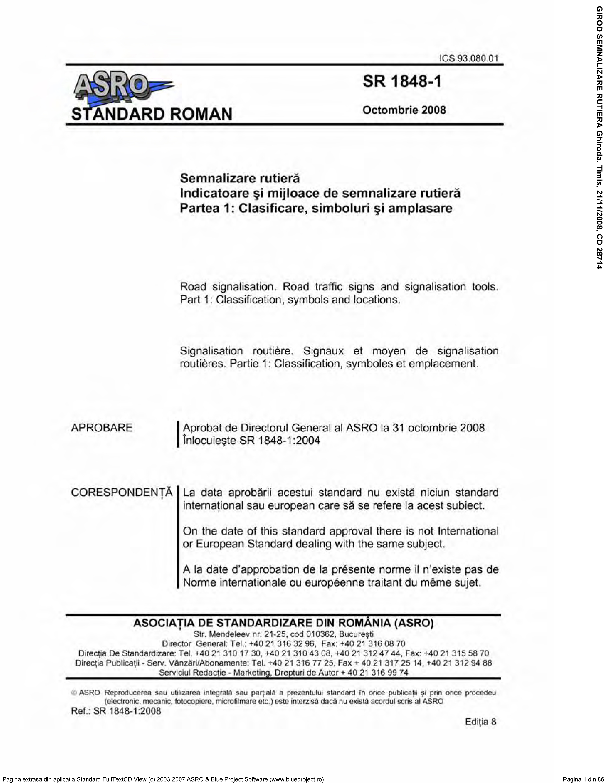 , ASOCIATIA DE STANDARDIZARE DIN ROMANIA (ASRO)