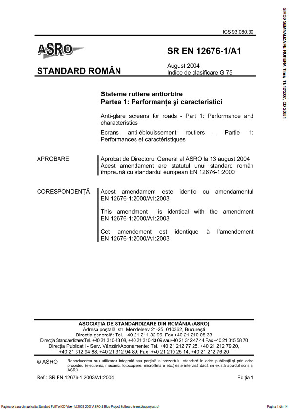 Standard Roman -Sisteme rutiere antiorbire