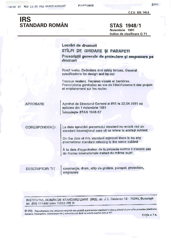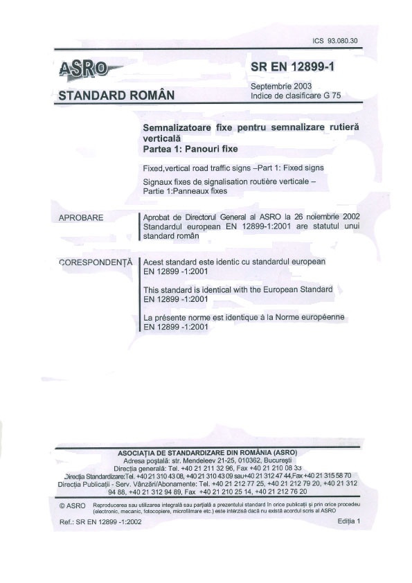 Standard Roman - Semnalizatoare fixe pentru semnalizarea rutiera verticala